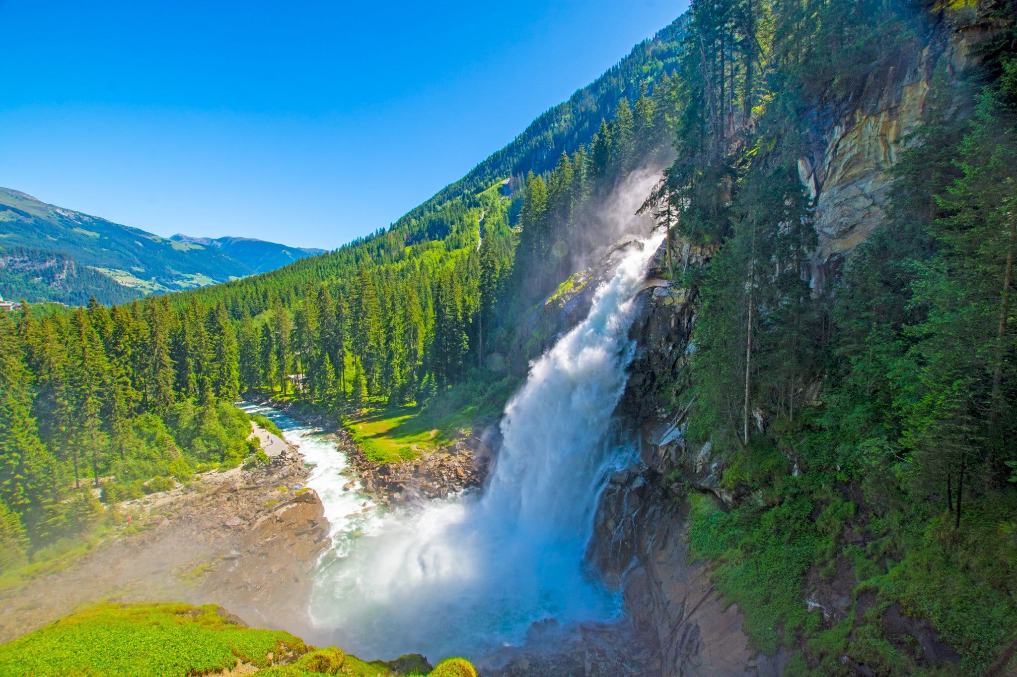 נסענו לבד גאסטיין ועלינו ברכבל לגשר התלוי ולמרפסות תצפית שונות. טיילו על ההר כשעה וחצי. נוף מהמם, מזג אוויר מושלם, אם כי קריר. ירדנו לעיירה (שם היה חם והחלפנו ג'ינס ארוך במכנס קצר) לסיבוב ליד המפל (ירדנו גם לתחתית המפל, ליד הכנסייה).