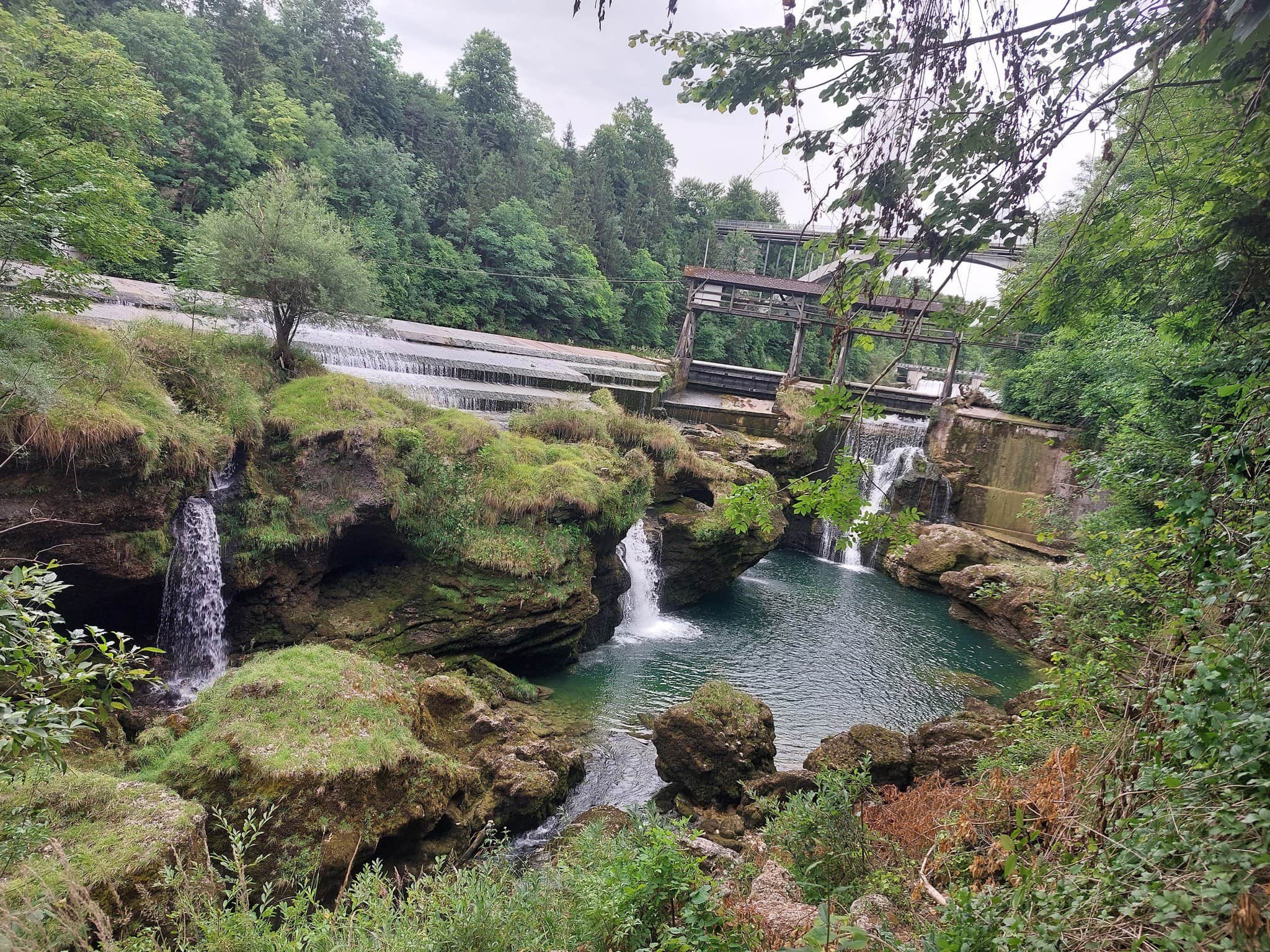 מעבר מוינה לדירה ליד זלצבורג – רכב לקחנו מתחנת הרכבת המרכזית של וינה (תחנה ענקית), העמסנו את המזוודות מהמלון ויצאנו לדרך, בדרך עצרנו במפלים נפלאים בשם Traunfall מרחק של 5 דקות הליכה מהחנייה, בחינם, כמה מדרגות בקטנה ומפלים בהחלט מרשימים.