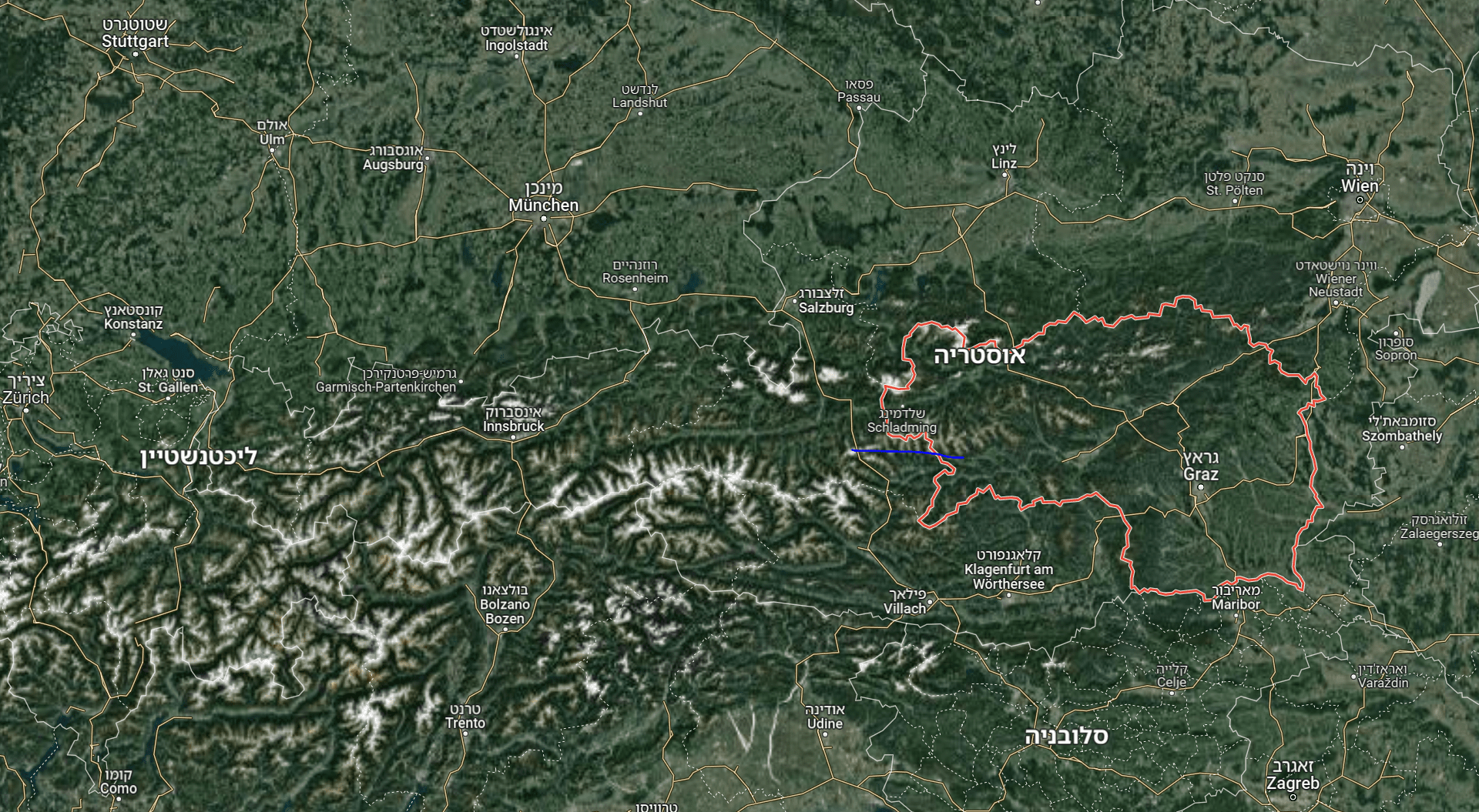 (וינה ממוקמת מימין למעלה, ובמרכז למעלה – מינכן)